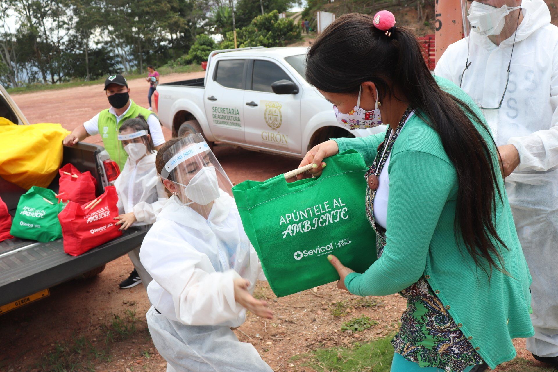 Durante los días 28 y 29 de agosto, nuestra compañía desarrolló la estrategia Microentornos en zona rural del municipio de Girón, a través de la entrega de 215 mercados en las veredas Barbosa, Soracá, Filo de los Amores, El Cedro y Linderos.