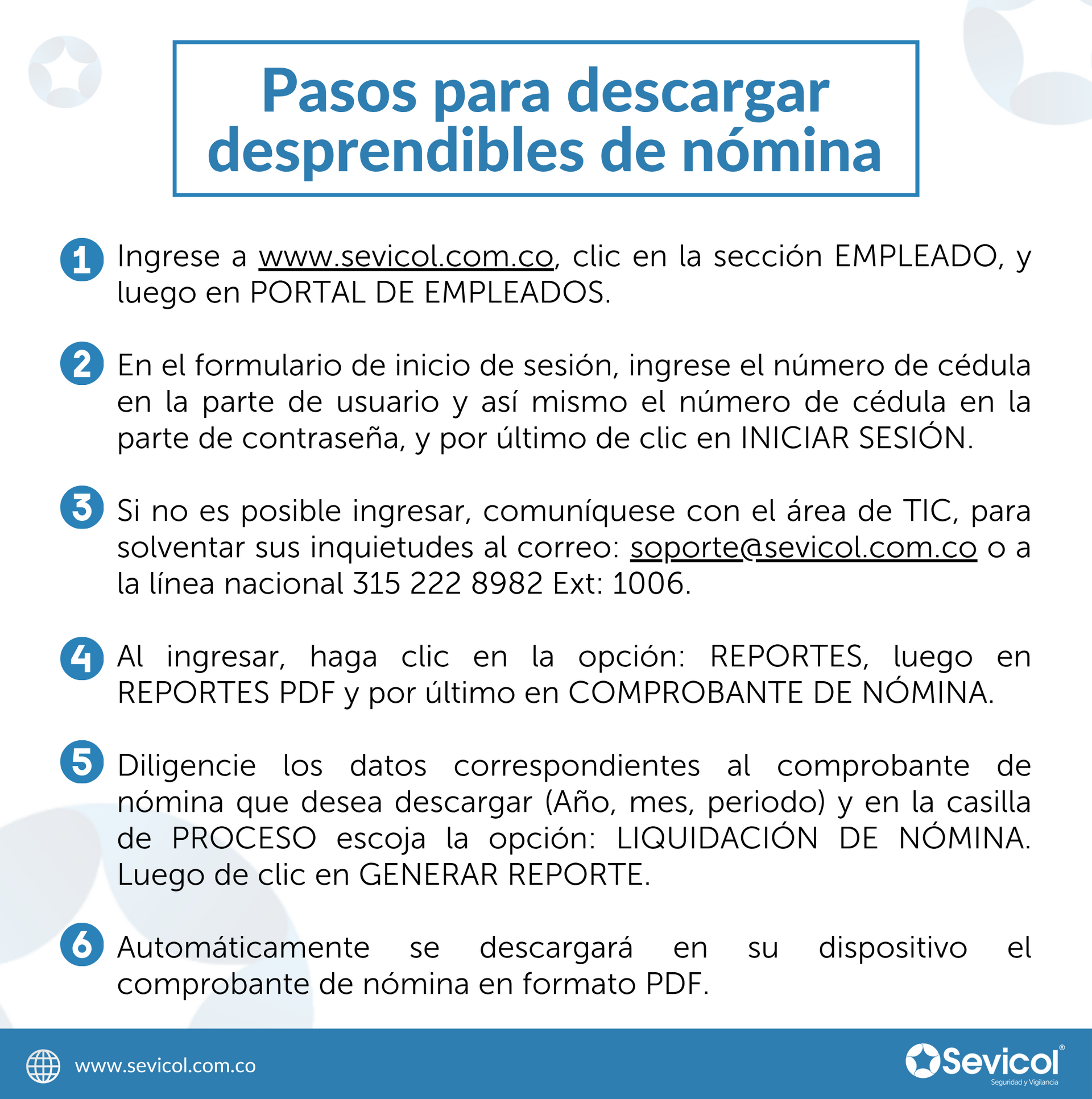 En este espacio todo colaborador de Sevicol puede acceder a su información personal, descargar comprobantes de pago, actualizar datos personales y realizar evaluaciones requeridas por la compañía.